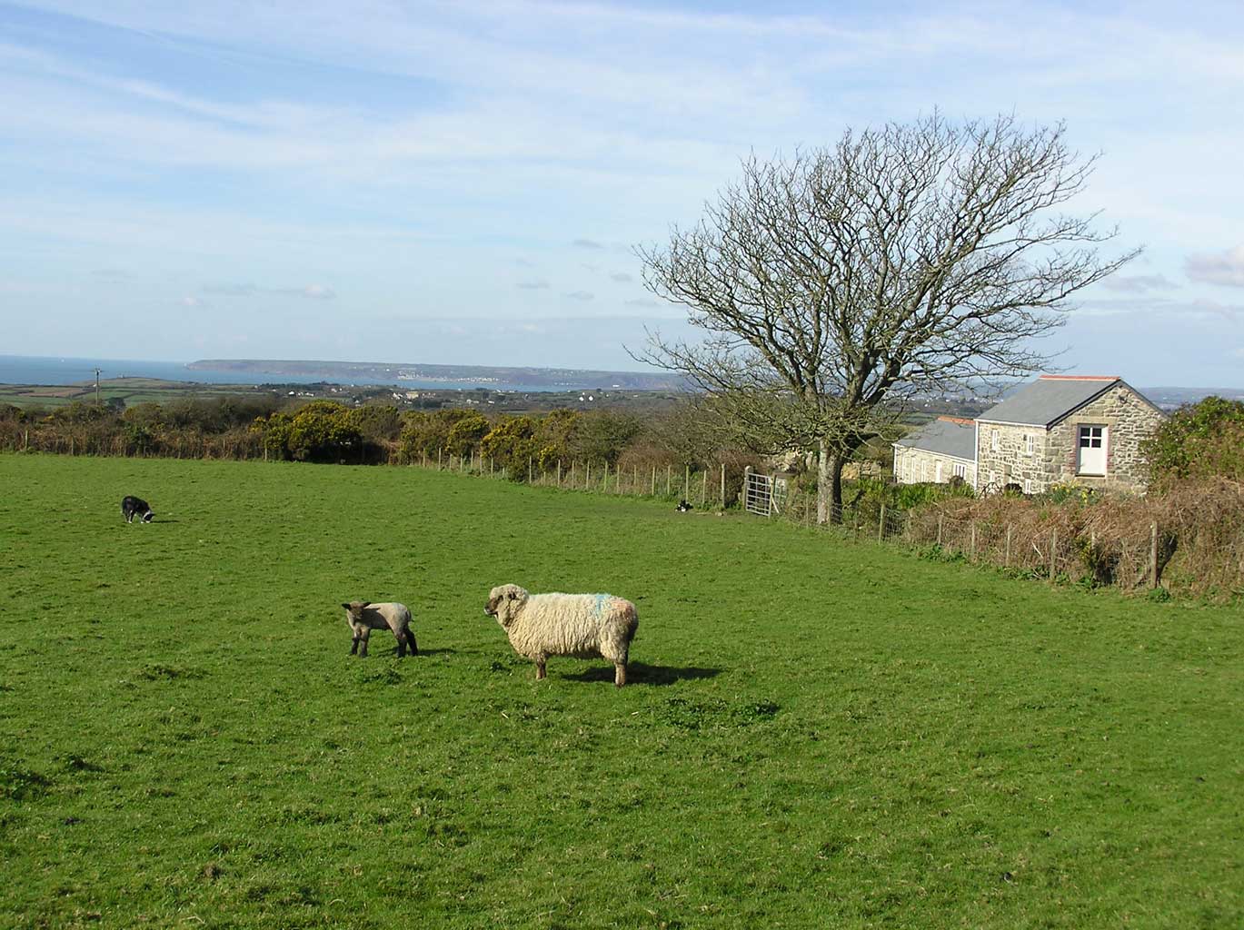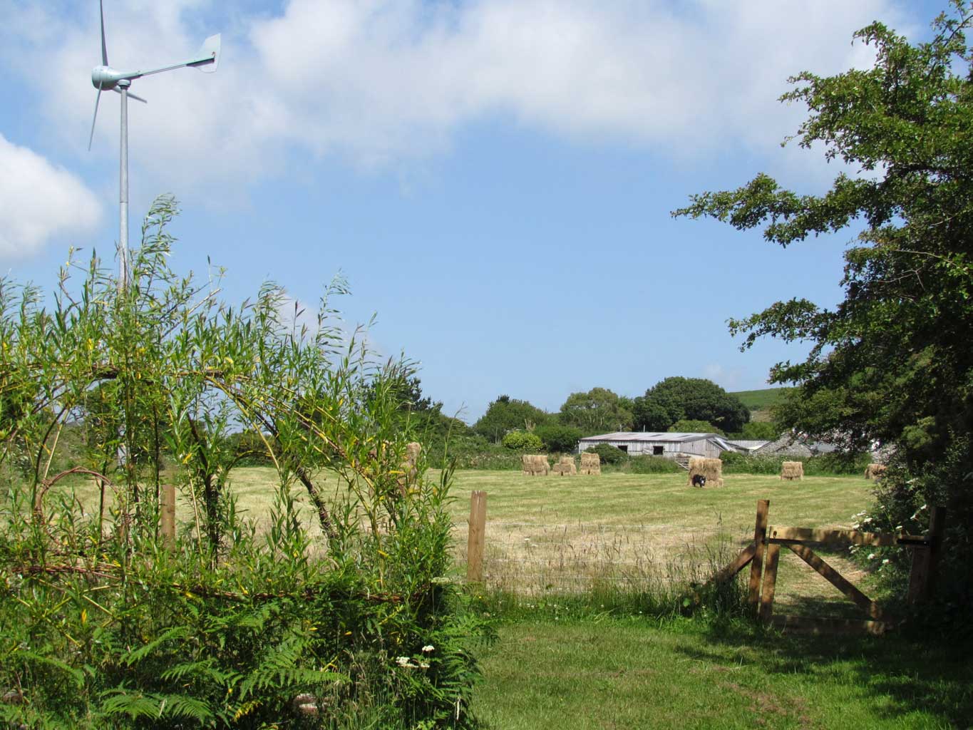 When we came here there were very few trees and very few shrubs in the garden. We are quite high up and only a mile inland so it can be quite windy and exposed. There was just the farmhouse with outbuildings and the derelict remains of a cottage which had been used as a barn. That ‘barn’ is now Mazey’s Cottage. It took us several years to convert the cottage. Meanwhile we kept sheep and chickens, started planting trees in 2003 and installed a small wind turbine in 2009. We feel that using renewable energy is vital for the future which is why we decided to invest in the turbine. It provides some of the energy demands of the cottage and also feeds the grid. We have also installed solar hot water on the house and cottage. We still have lots to do, especially on our house but are getting older so although we still have a few sheep (some quite old now) we no longer have lambs and spend most of our time just looking after the farm and visitors.